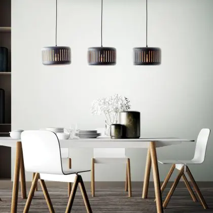 Brilliant Tyas Luce Pendente Metallo Nero Oro | Adatto per 3x E27