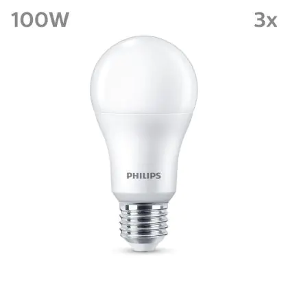 La Confezione Multipack 3x Philips Bulbo LED E27 Pera Ghiaccio 13W 1521lm - 840 Bianco Freddo è la perfetta sostituzione per la tua lampada convenzionale W con attacco E27 grazie alla sua tecnologia LED. Passare a LED ti offrirà tanti vantaggi!
