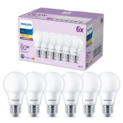 | Nome del fabbricante | Box 6 stuks - Philips LED Lamp Mat - 60 W - E27 - Warmwit licht | |