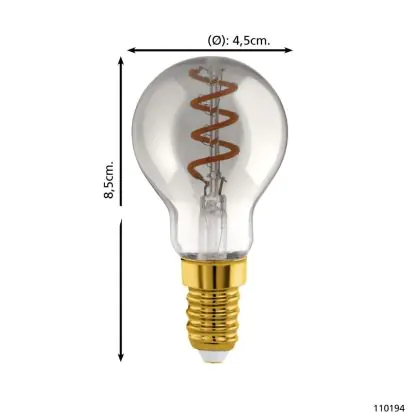 La lampada Eglo LED Sferica E14 Filamento Smokey 4W 100lm - 820 Bianco Molto Caldo | Dimmerabile - Sostitutiva 15W è il sostituto perfetto per le tue vecchie lampade 15W con attacco a vite piccolo E14 grazie alla sua tecnologia LED. Passare a LED ti offrirà molti vantaggi!