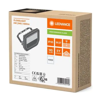 Ledvance Proiettore LED Aluminium Bianca 8W 1200lm 100D - 840 Bianco Freddo | IP66 - Simmetrico