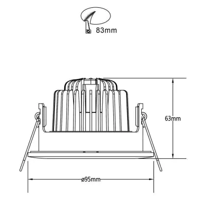 Descrizione Noxion Faretti LED Hydro Inclinabile Antincendio Bianca 6W 400lm 36D - 927 Bianco Molto Caldo | Ritaglio 83mm - IP65 - Miglior resa cromatica - Dimmerabile
