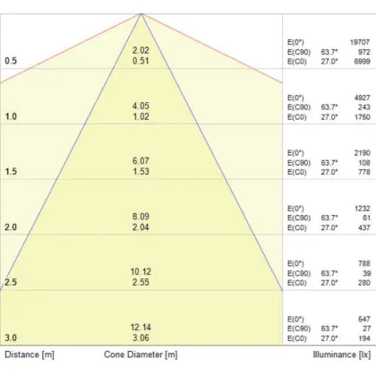 L'apertura del fascio luminoso indica l'angolo del fascio di luce proveniente da una lampada o lampadina. Si misura in gradi (D) e più piccolo è l'angolo, più piccola è l'apertura del fascio di luce.