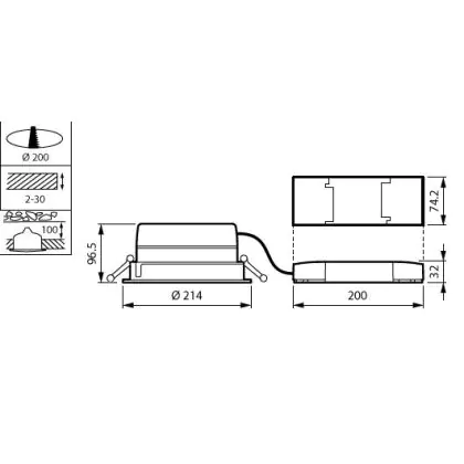 Descrizione Philips Downlight LED LuxSpace Compatto Altezza ridotta DN570B VLC-E 19.8W 2200lm 80D - 830 Luce Calda | 214mm - Aluminium Riflettore - Dali Dimmerabile - Emergenza 3H