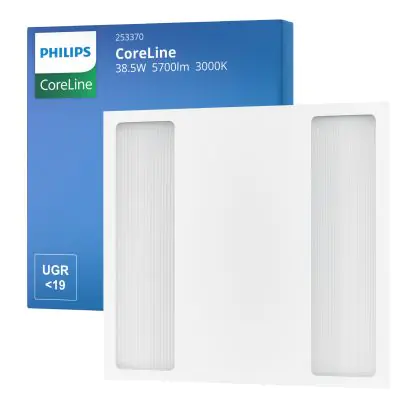 Questo pannello LED di Philips ha dimensione 60x60cm, che lo rende perfetto da montare in un soffitto a griglia, ma può anche essere montato a superficie con degli accessori appositi. Inoltre consuma solo 38.5 W ma ha una potenza luminosa di 5700 lm, il che lo rende un perfetto sostituto dei tubi fluorescenti 4x18 W. I costi energetici saranno fino al 70% più bassi rispetto a un apparecchio convenzionale.
