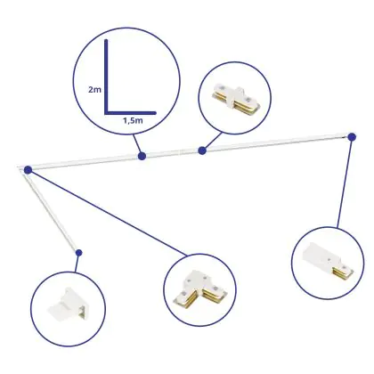 | Nome del fabbricante | Complete L shaped 1-Phase Track Set White – 1,5 x 2 meter incl. End Cap, Power Connector and L -Con | |