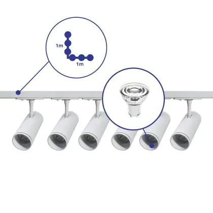| Nome del fabbricante | Complete L shaped 1-Phase Track Set White incl. 6x Spot fixture + GU10 2700K 3W Dim – 1 x 1 meter i | |